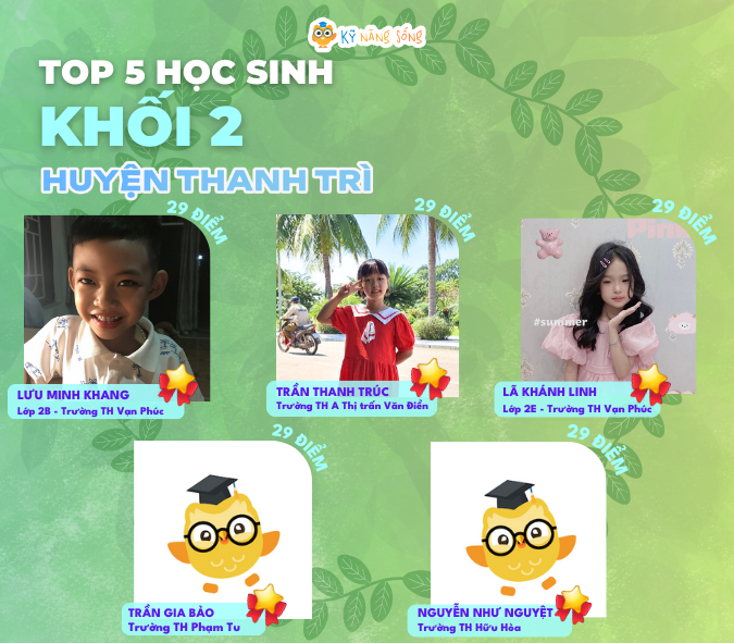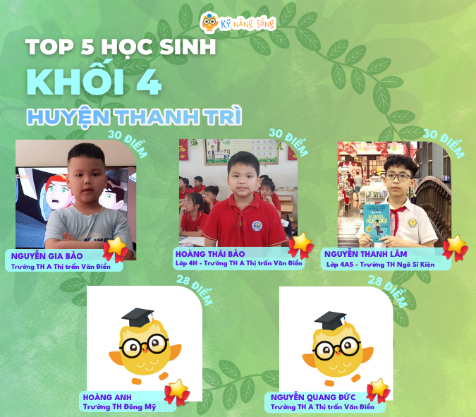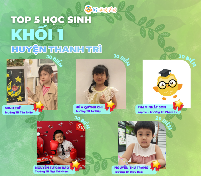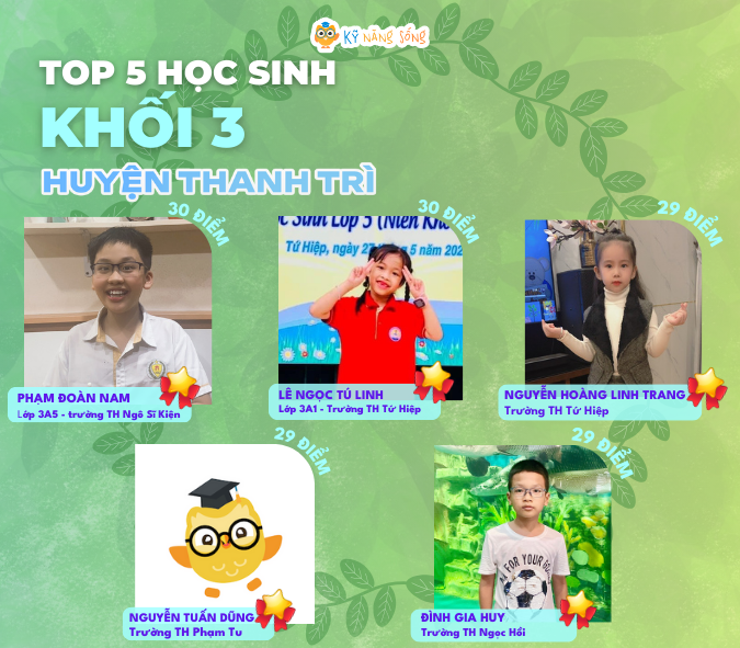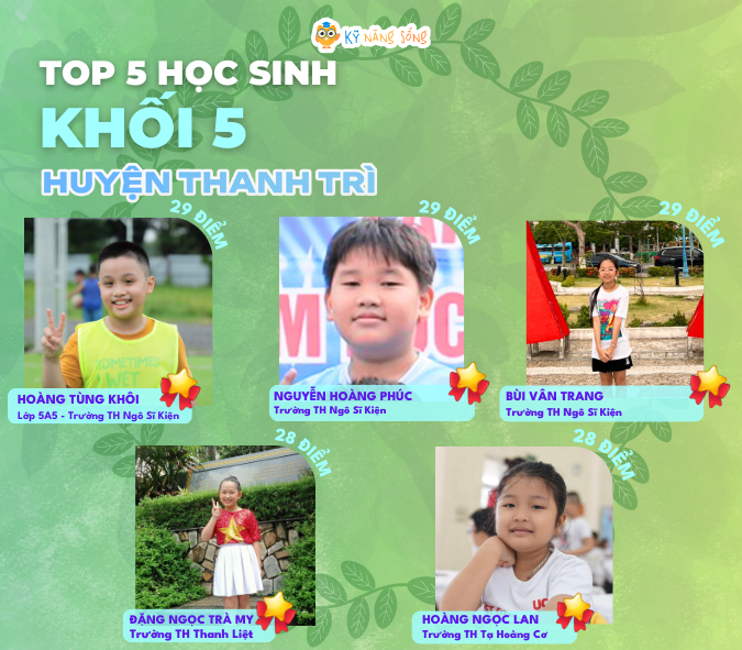 KNS xin tôn vinh Top 5 học sinh các khối của huyện Thanh Trì trong vòng Trải nghiệm số 5!