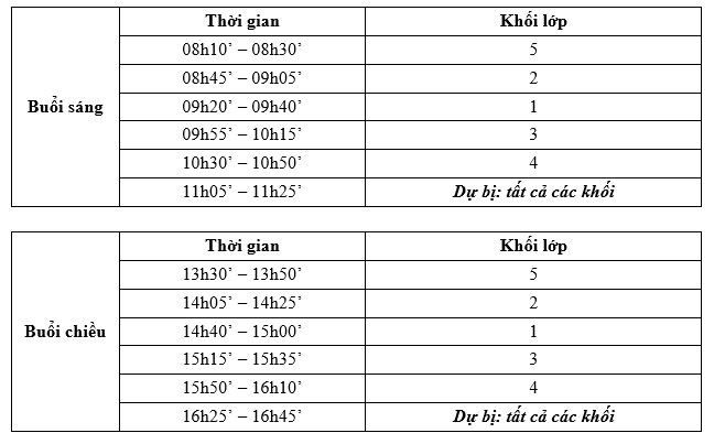 *Ca dự bị chỉ dành cho các học sinh của các ca thi trước đó có lỗi về máy tính, kết nối mạng và được BTC xác nhận, xử lý cho thi lại.