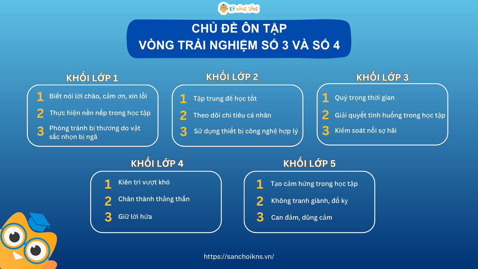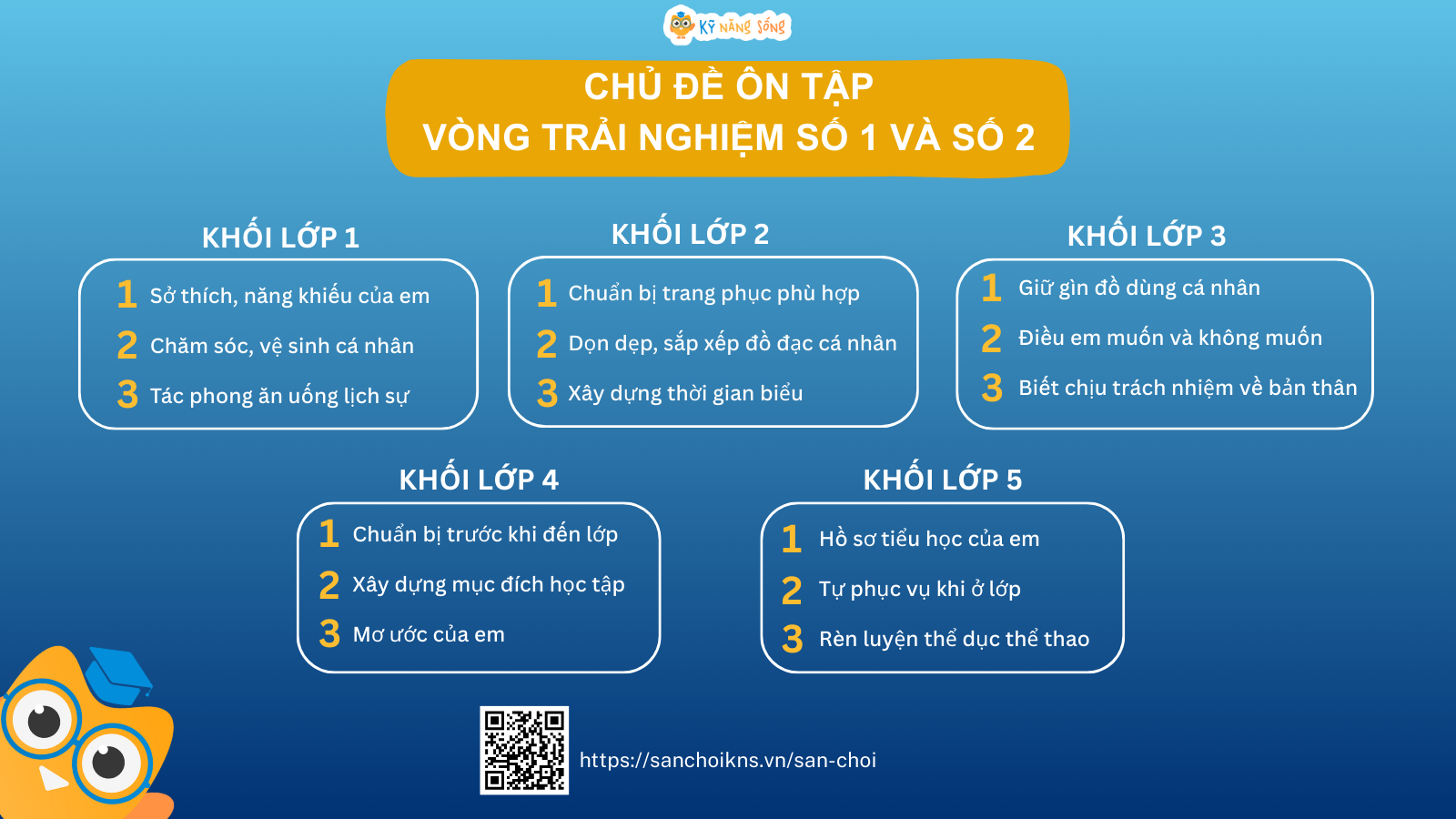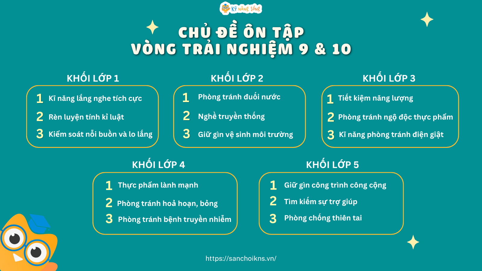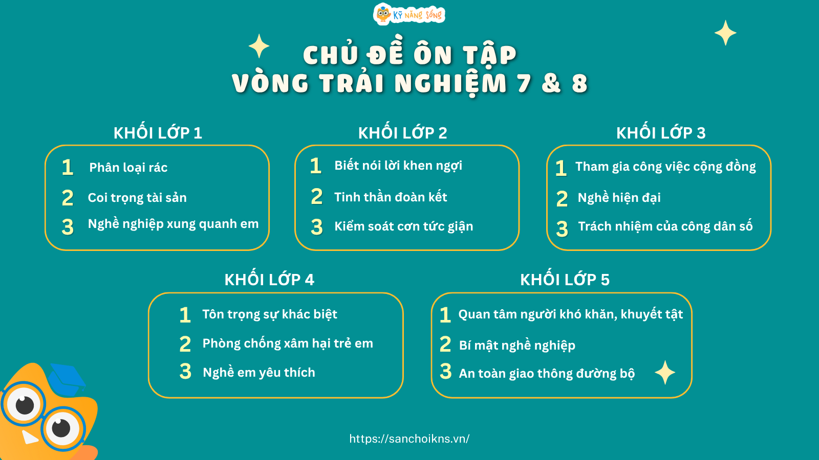 Nhằm giúp học sinh tích lũy được kiến thức và ứng dụng Kỹ năng sống, nội dung hoạt động trải nghiệm vào trong đời sống thực tế; rèn luyện đạo đức, nề nếp, lối sống văn minh tích cực, trang bị kỹ năng sinh tồn, ứng xử trước các tình huống, đồng thời, đạt kết quả cao hơn nữa trong các Vòng trải nghiệm - Chung kết các cấp của Sân chơi Kỹ năng sống KNS trên Internet, BTC sân chơi chính thức công bố: