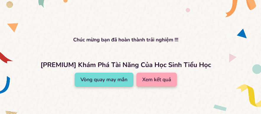 | Bước 3 | Sau khi hoàn thành trải nghiệm --> VÒNG QUAY MAY MẮN để tích lũy Huy hiệu (ngẫu nhiên) hoặc chọn XEM KẾT QUẢ để nhận bản đánh giá chi tiết | ![]() |