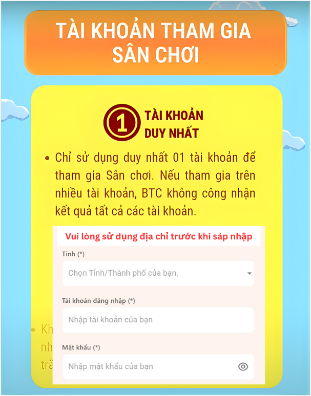 - Mỗi học sinh chỉ được sử dụng 01 tài khoản duy nhất để tham gia VTC cấp Tỉnh/TP. Nếu học sinh tham gia cùng lúc nhiều tài khoản BTC sẽ không công nhận kết quả tất cả các tài khoản của học sinh đó.