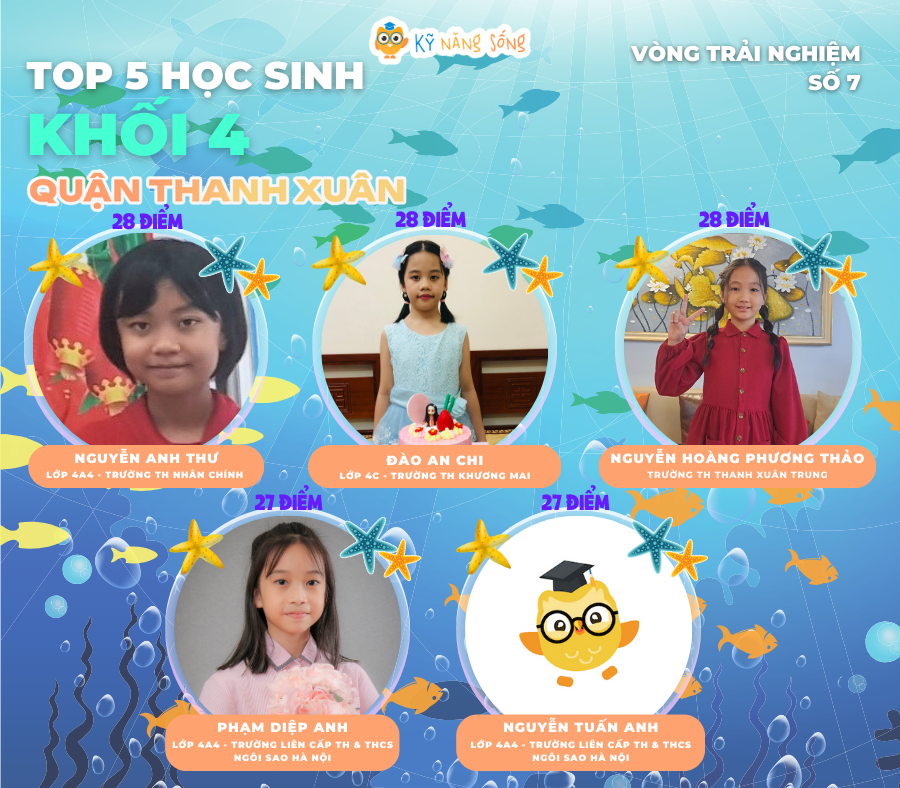 Quận Thanh Xuân với hơn 16.000 tài khoản tham gia Sân chơi Kỹ năng sống, với nhiều gương mặt đại diện trên bảng xếp hạng các tuần từ những ngôi trường tiêu biểu như TH Kim Giang, trường TH Phan Đình Giót, Trường Liên cấp TH & THCS Ngôi Sao Hà Nội,.... KNS xin tôn vinh 25 bạn học sinh đứng đầu các khối trên toàn quận và Trường Tiểu học Khương Mai - Trường có tỉ lệ học sinh tham gia đông đảo nhất! Cảm ơn sự đồng hành từ nhà trường và các bạn học sinh!