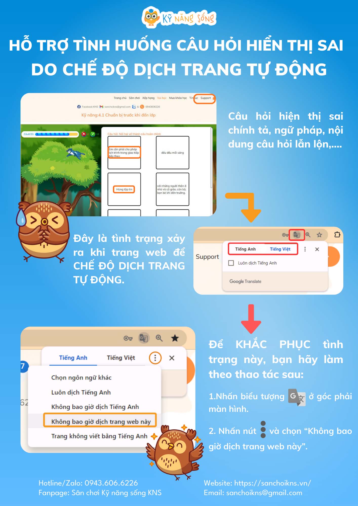 HỖ TRỢ TÌNH HUỐNG CÂU HỎI HIỂN THỊ SAI DO CHẾ ĐỘ DỊCH TRANG TỰ ĐỘNG